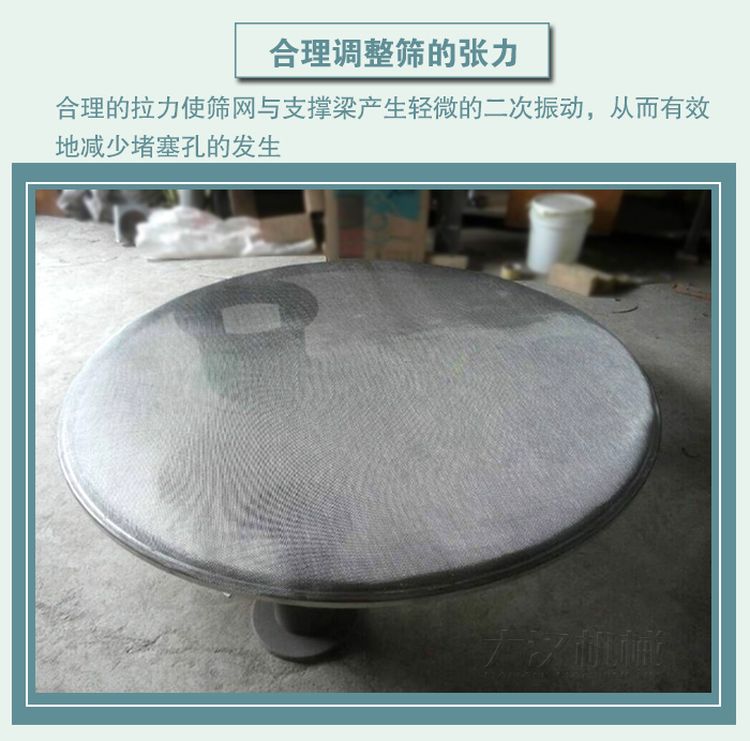 合理調(diào)整篩網(wǎng)拉力是減少篩網(wǎng)堵塞的有效方法。合理的拉力使篩網(wǎng)與支撐梁產(chǎn)生輕微的二次振動,從而有效地減少堵塞孔的發(fā)生。具體方法是使張力鉤成為恒力張力機構,即在張力螺栓上安裝彈簧。