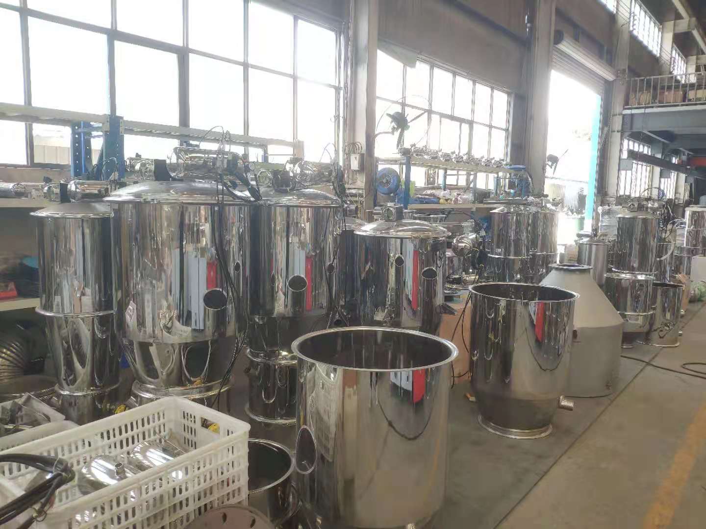 真空上料機是用旋渦氣泵抽氣,使吸料嘴進口處及整個系統(tǒng)處于一定的真空狀態(tài),粉粒料隨同外界空氣被吸入料嘴,形成料氣流,經(jīng)過吸料管到達(dá)料斗,在料斗中進行氣、料分離。分離后的物料進入受料設(shè)備。送料——放料是通過氣動三通閥不斷地開、閉來完成的,而氣動三通閥的開閉是由控制中心來控制,上料機中裝有壓縮空氣反吹裝置,每次放料時,壓縮空氣脈沖反吹過濾器,把吸附于過濾器表面的粉末打落下來,以保證吸料能正常運行。
