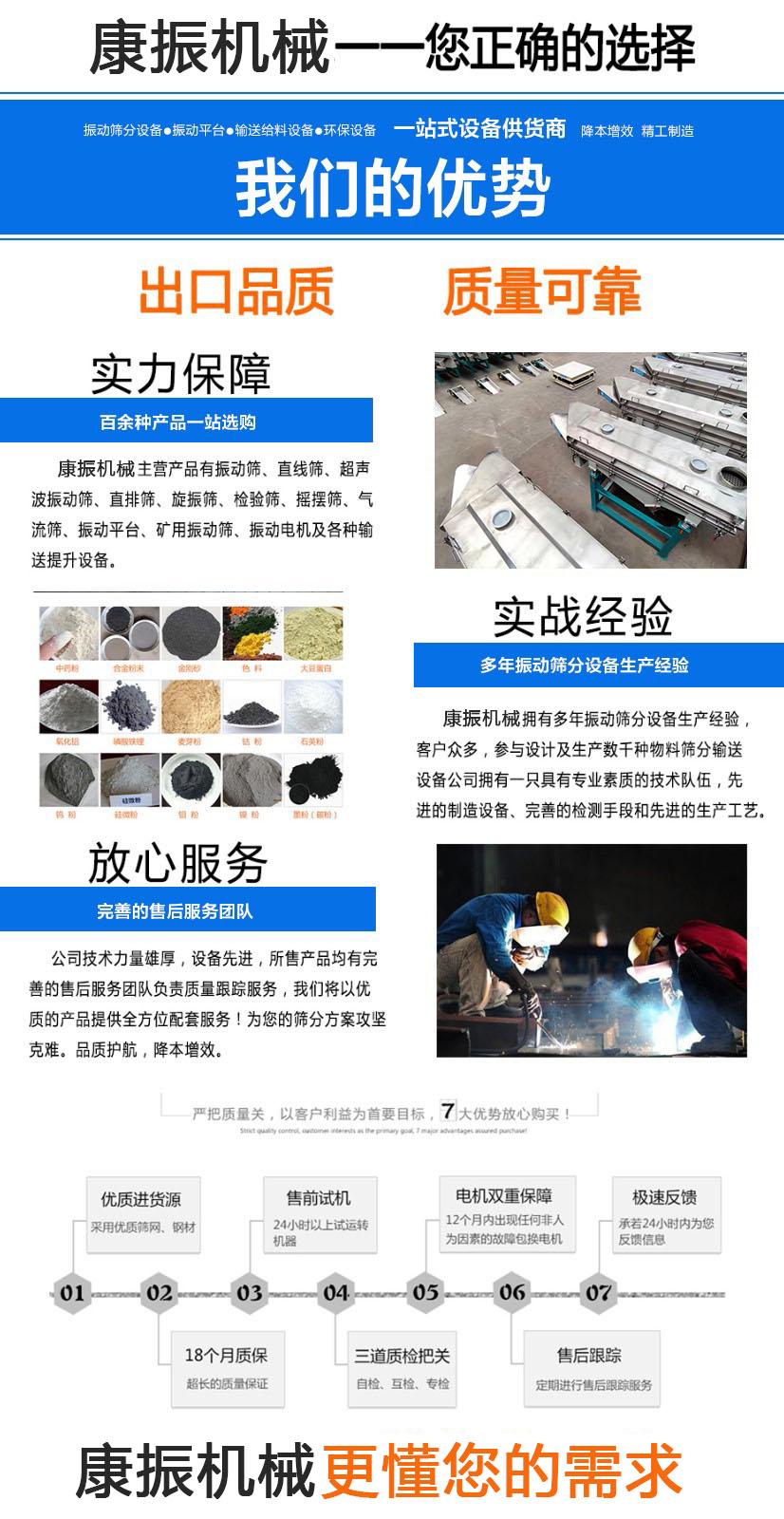 4、易于調(diào)整:幅、振動頻次、篩面傾角均可根據(jù)用戶生產(chǎn)線的實(shí)際情況進(jìn)行調(diào)整