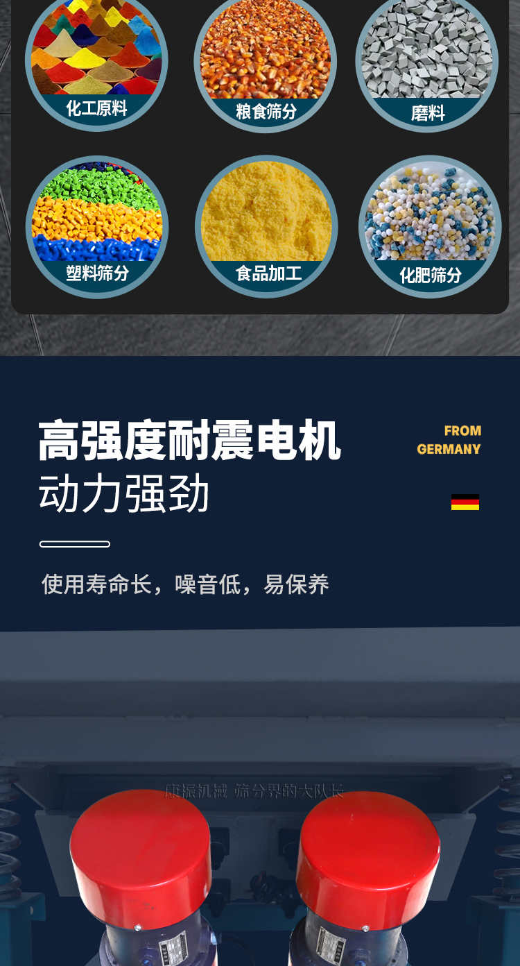 對粉狀、顆粒狀物料的篩選和分級,廣泛應用于塑料、磨料、化工、醫(yī)藥、建材、糧食、炭素、化肥等行業(yè).直線振動篩(直線篩)系新型的篩分設備,廣泛用于礦山、煤炭、冶煉、建材、耐火材料、輕工、化工等行業(yè)。