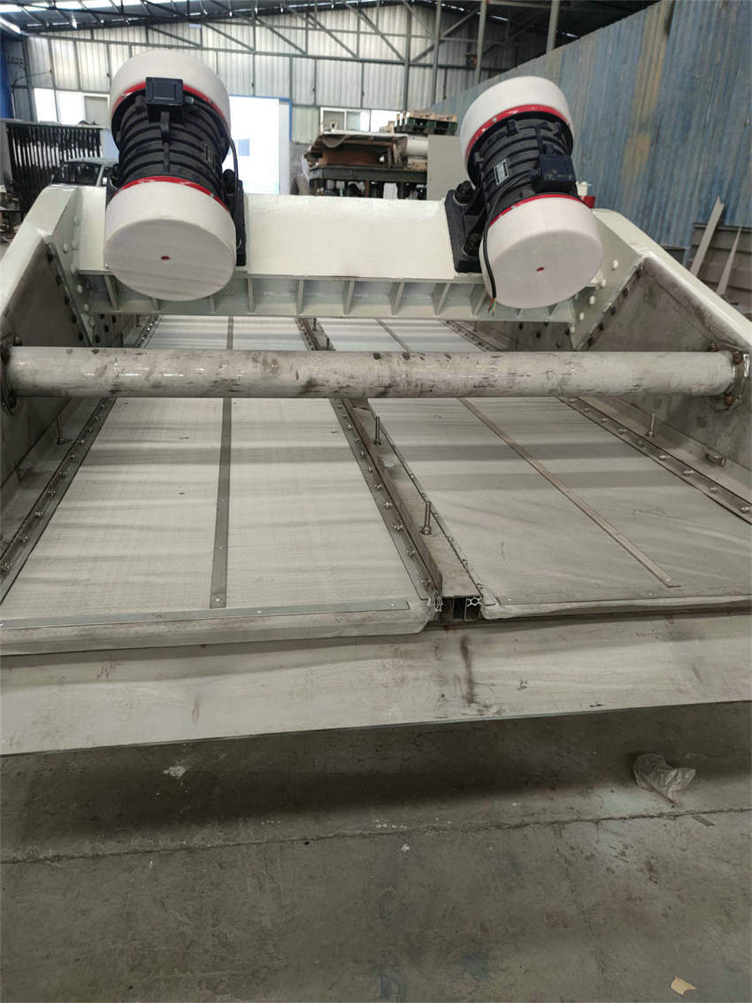 1、篩機(jī)整體采用水平安裝,篩網(wǎng)傾斜安裝,可以保證強(qiáng)制脫水;